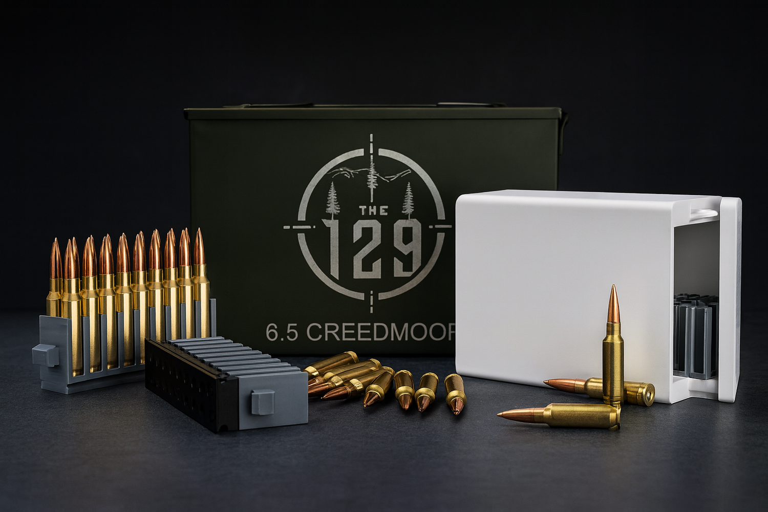 The 129 is proud to introduce our next innovation—premium 6.5 Creedmoor storage solutions built for shooters who demand reliability, organization, and speed. Engineered with precision and designed for durability, our upcoming release will change the way you store and transport your ammunition.